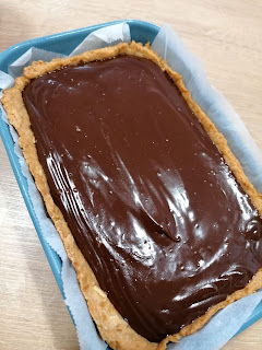 El único molde disponible en el hogar era el típico rectangular de ikea de 23cm x15 cm, así que me fui a la aventura con él y ni tan mal. La masa me dio justita para completar el molde y me sobró un poco de ganache, pero le di uso rápido.