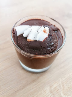 Opcional. Yo a modo de decoración y porque todos sabemos que soy un poco gordapapa le he puesto más chocolate negro derretido por encima y trocitos de coco.