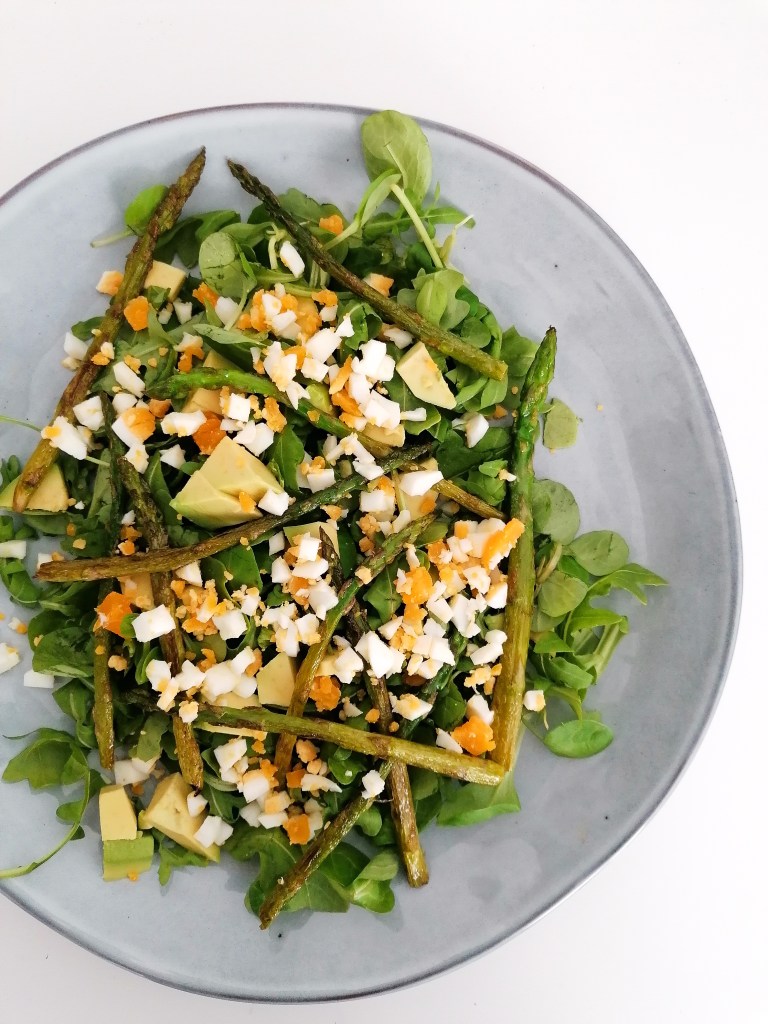 Un comentario en “Ensalada de espárragos, aguacate, rúcula, huevo y canónigos”
