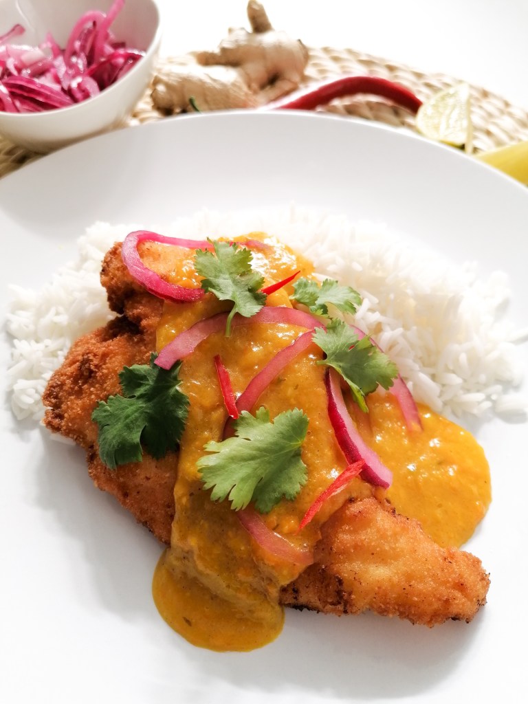 Esa carne de pollo jugosito con un empanado crujiente y ese curry casi Katsu tan suave y aromático es una delicia.