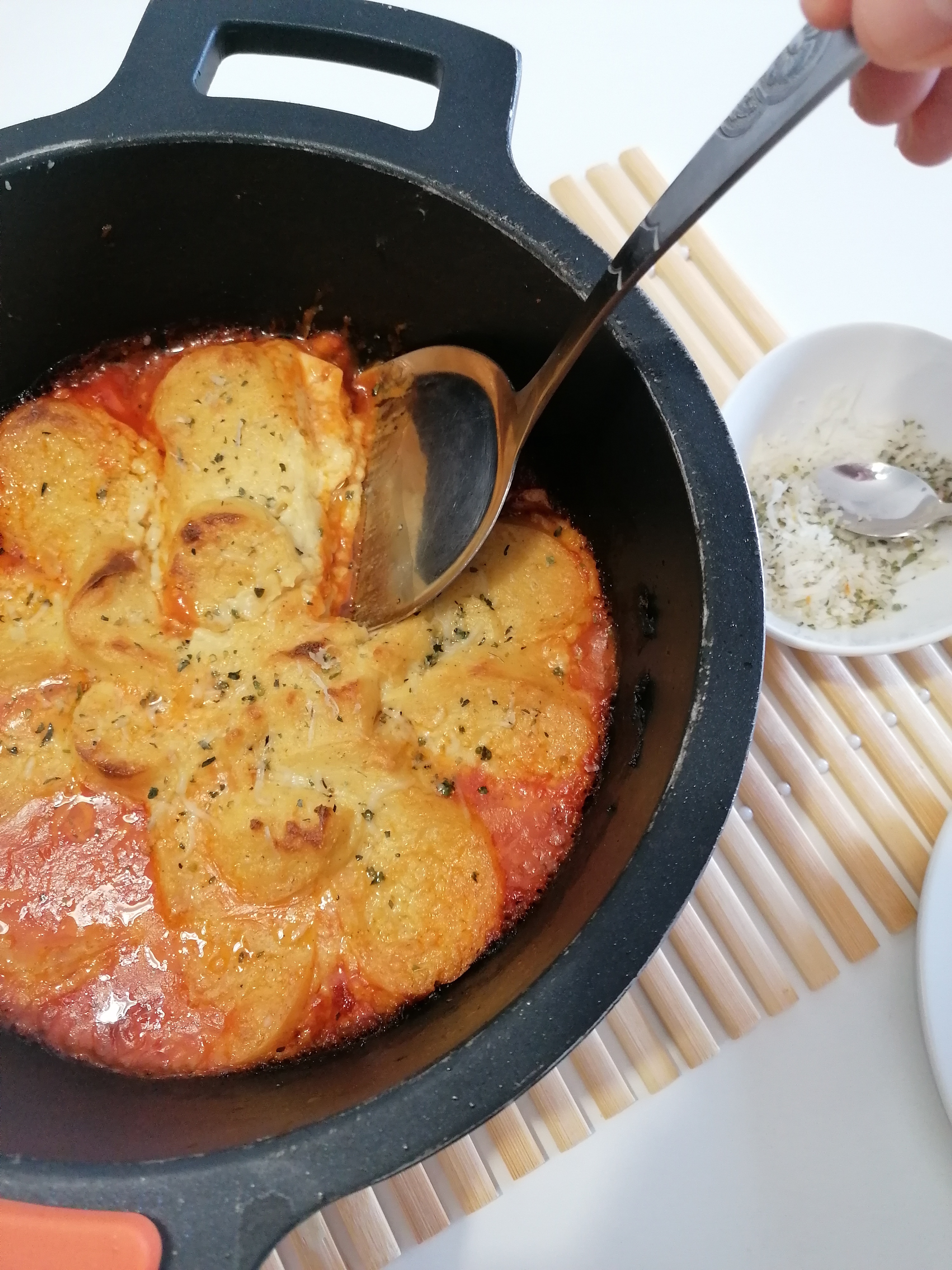 Dicen que la imitación es la forma más alta de admiración, así que aquí estoy yo desde mi hogar versionando su polenta con queso y tomate para la columna del New York Times.