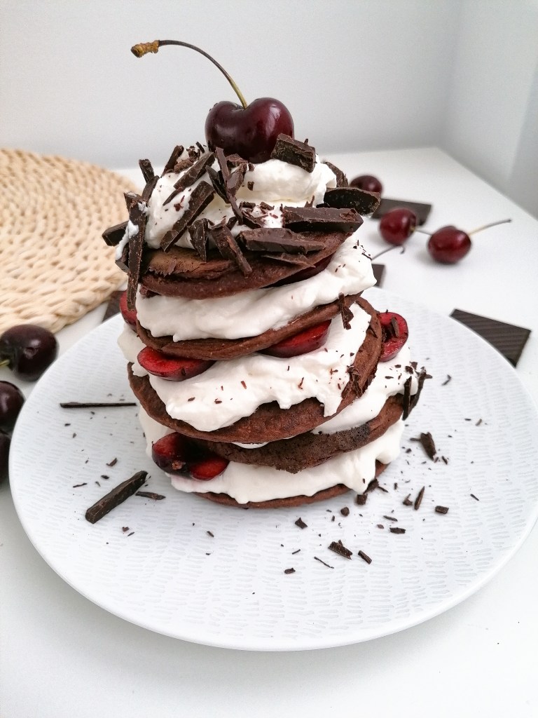Tortitas de chocolate fit al estilo selva negra con nata fat