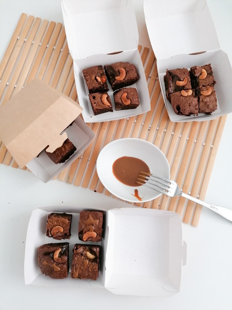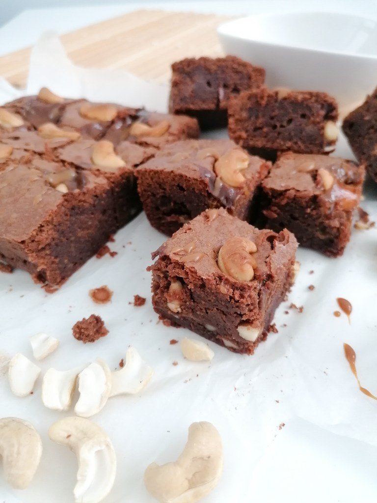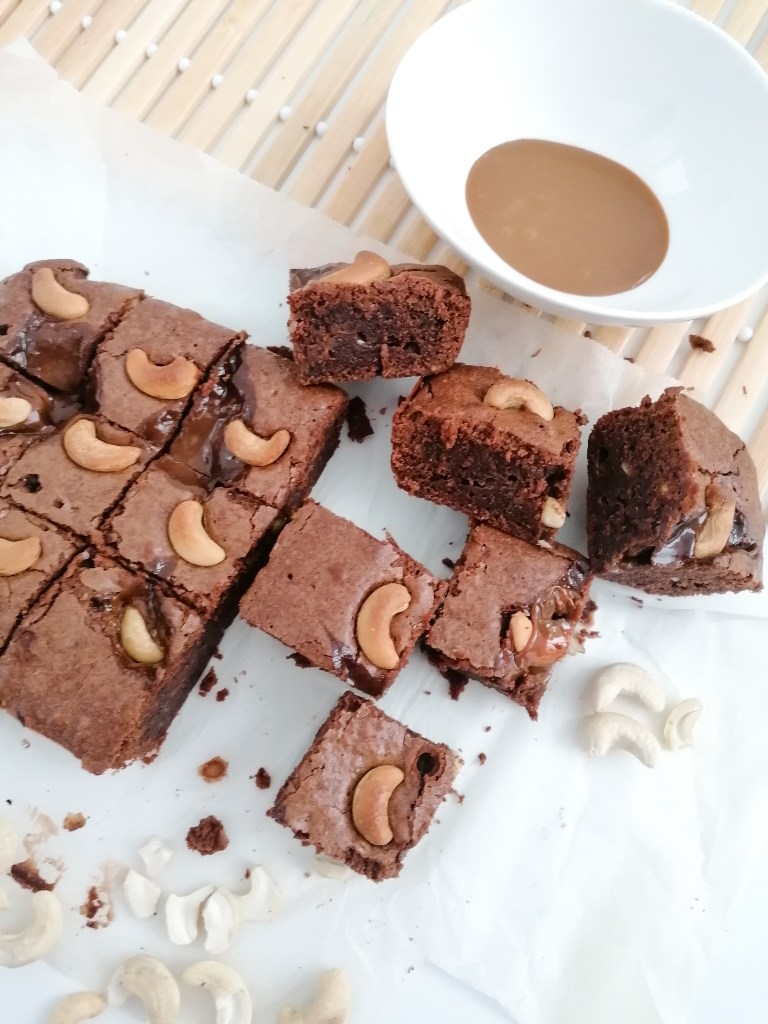 Brownie de anacardos y dulce de leche