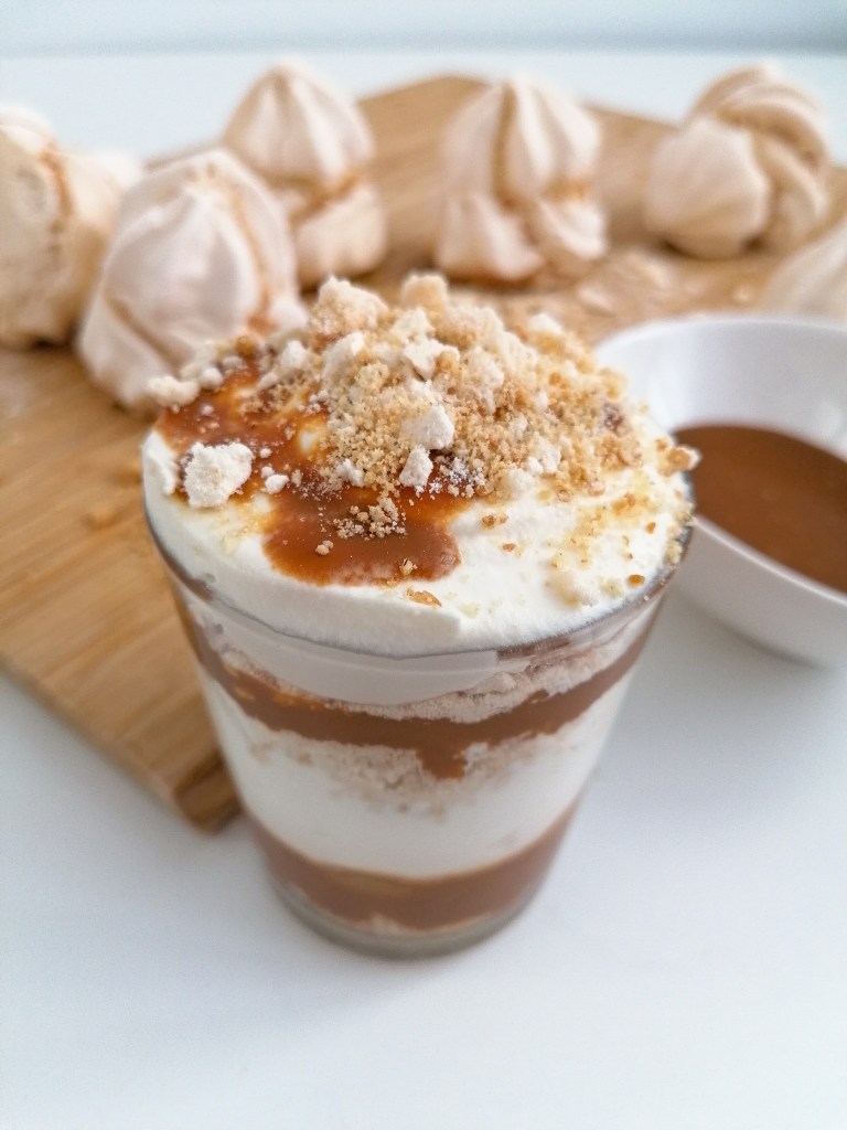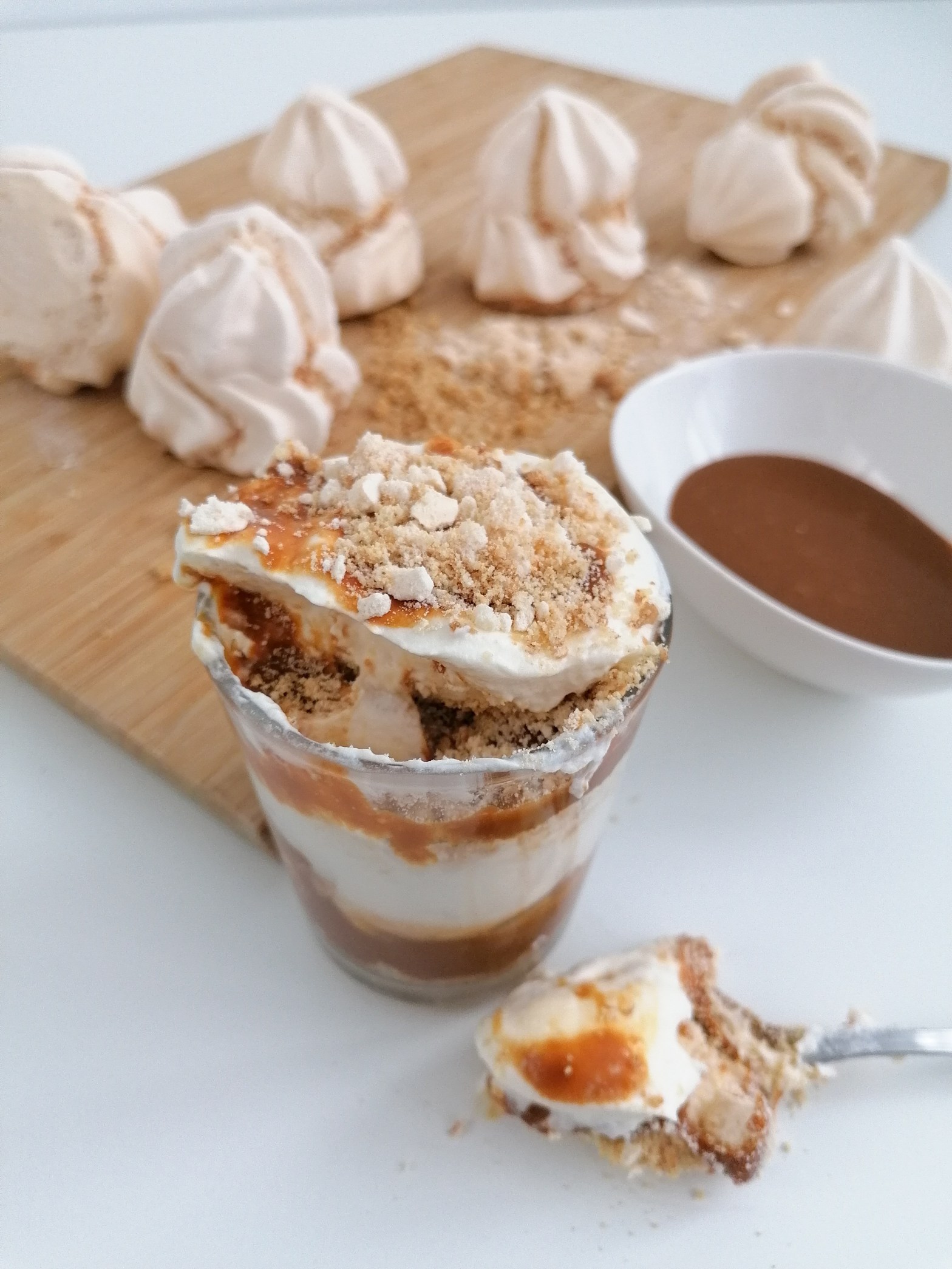- Puedes volver a poner dulce de leche y repetir otra capa con nata y las migas de galleta y suspiros de Moya. Obviamente puedes seguir haciendo capas, tantas como tu gordopapismo te permita.