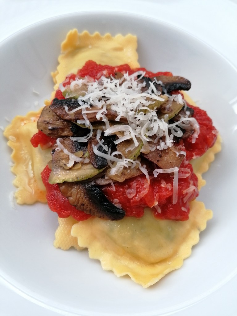 Compra un paquete de pasta fresca rellena y ponlo en la nevera, el día que te veas a punto de comprar billetes para huir a Bali a lo mejor te salva de la crisis existencial. Lo normal es que se haga en agua hirviendo entre dos o tres minutos. Eso significa que tardarás menos de cinco minutos en tener algo para comer. Una opción para acompañar a la pata fresca es un poco de tomate frito con calabacín y champiñones a la plancha.