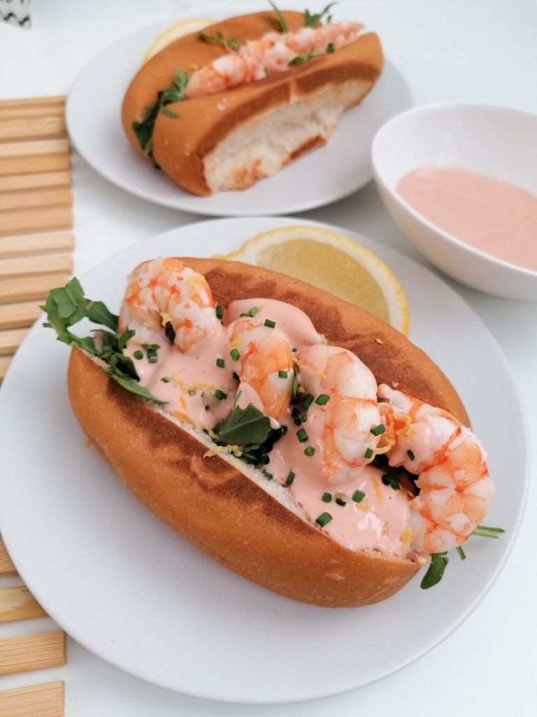 Un bocadillo siempre viene bien, sobre todo si eres tan gordapapa como yo. Este pan brioche relleno de salsa rosa, gambas, rúcula y ralladura de limón te transporta mentalmente a los pies de una piscina, aunque estés sentado en el sofá de tu hogar.