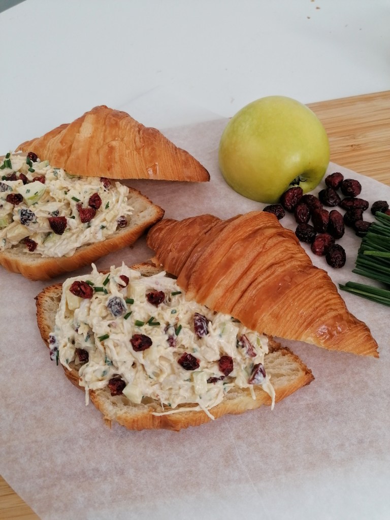 🥗🥐Croissant relleno de ensalada de pollo, arándanos secos y manzana verde 🥐🥗