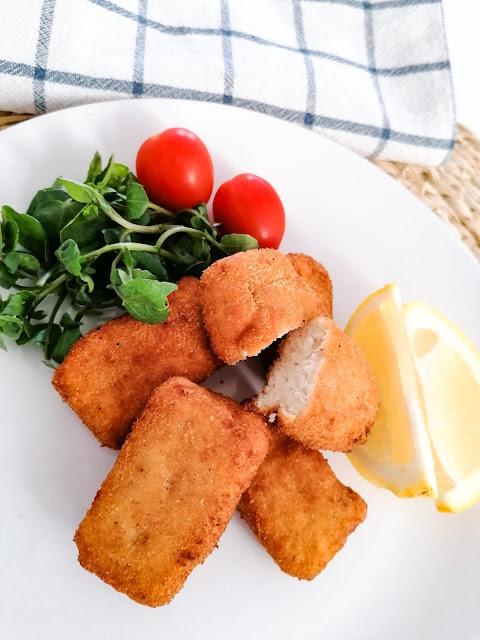 Al preparar estas barritas de pescado caseras al estilo del capitán pescanova, veo a mi pequeña con un moñito con tres pelos en lo alto de la cabeza, un babero que le llegaba a las rodillas de color azul, esperando en su sillita diminuta con los ojazos marrones bien abiertos y unos cachetes recordetes. Tiene esa cara seria con la que parece que está a mil años luz y pestañea muy lento, es la misma expresión que pone hoy en día cuando algo le interesa. Eso no ha cambiado.