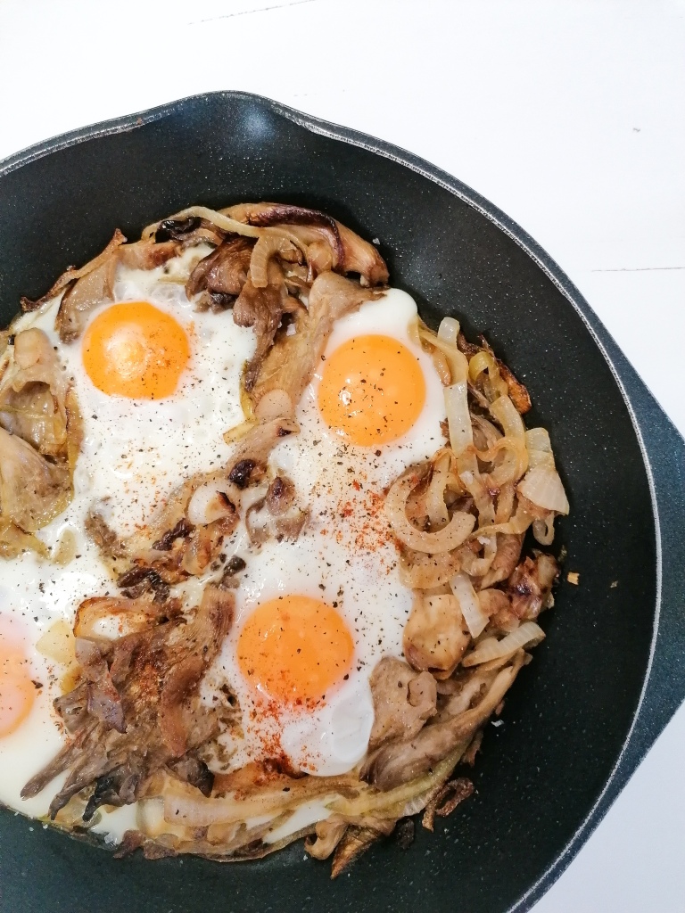 Sartenada con champiñones y huevos