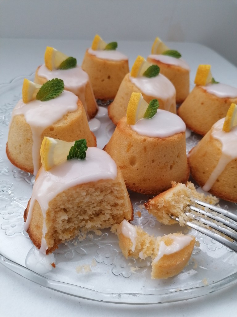 Mini queques se limón glaseados una miga densa con mucho sabor a cítricos es imposible tomar solo uno.