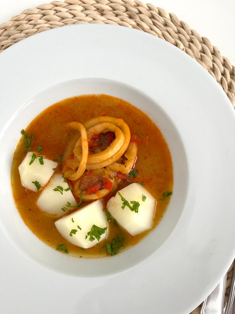 ¡Yuuuupiii! Tocaban calamares en salsa.