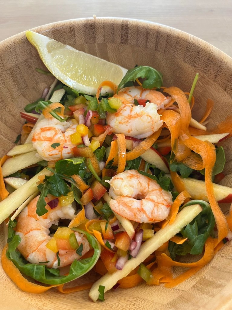 Amo la ensalada de gambas con picadita sobre todo porque si te sobra tienes un relleno para sandwich genial.