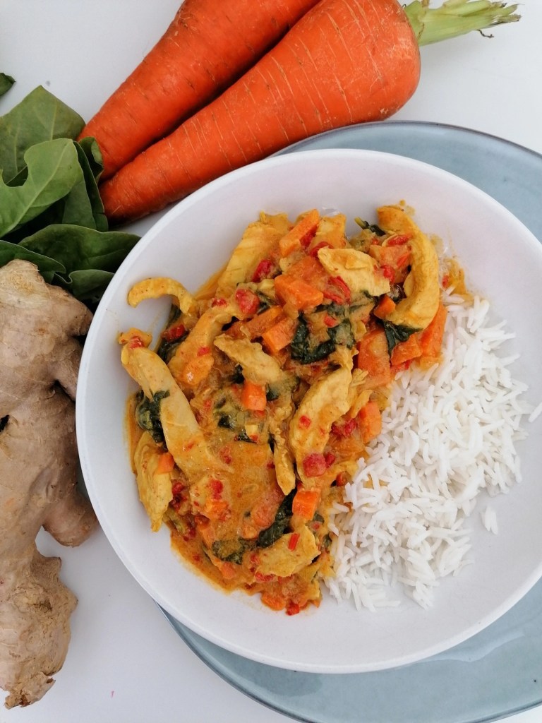 Este pollo al curry con zanahorias y calabaza es muy sencillo y es de esos platos que están más ricos al día siguiente.