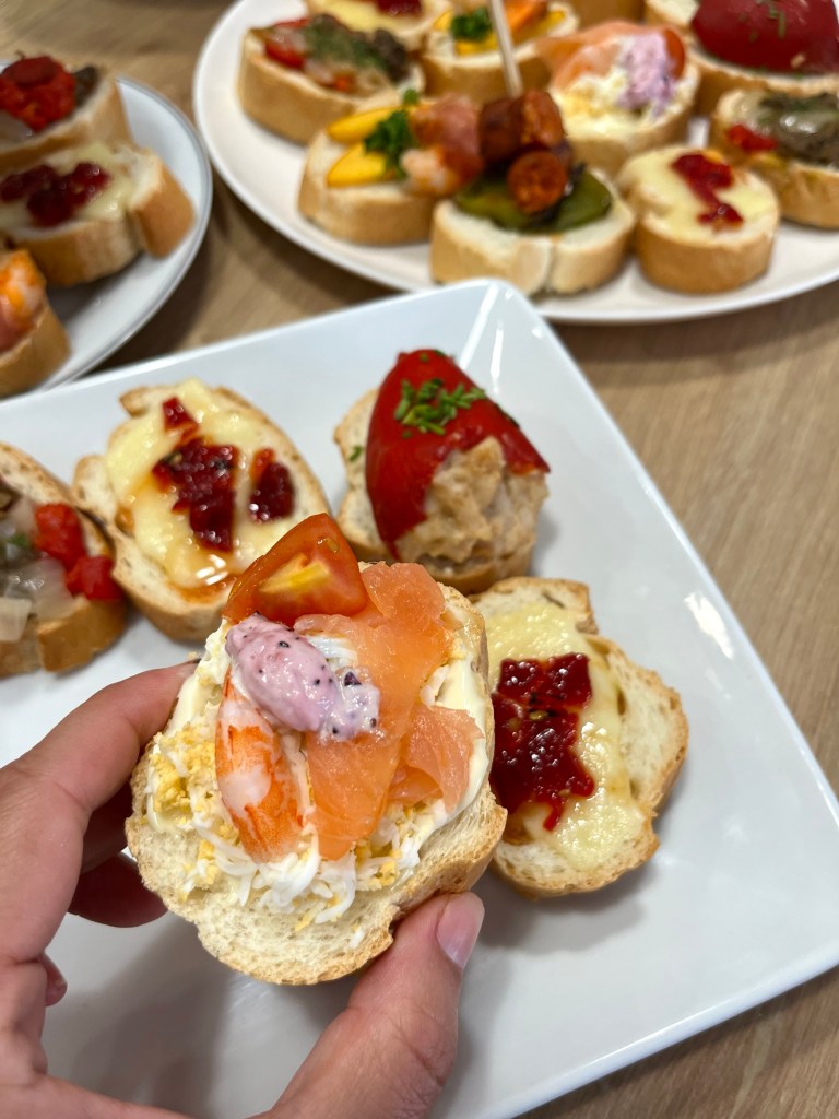 🫐Salmón ahumado, gambas, huevo duro y mayonesa de arándanos.
