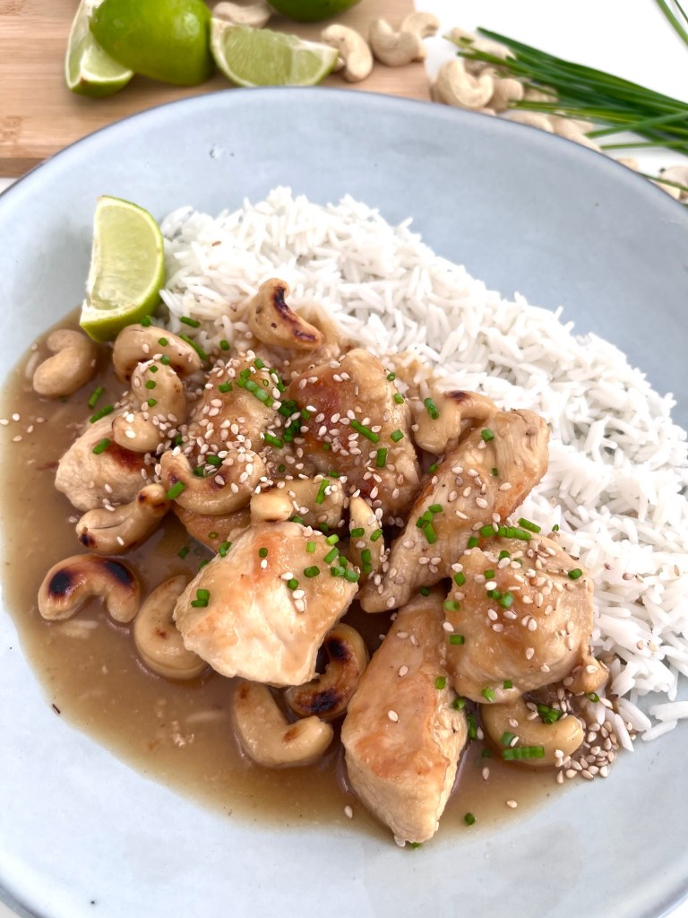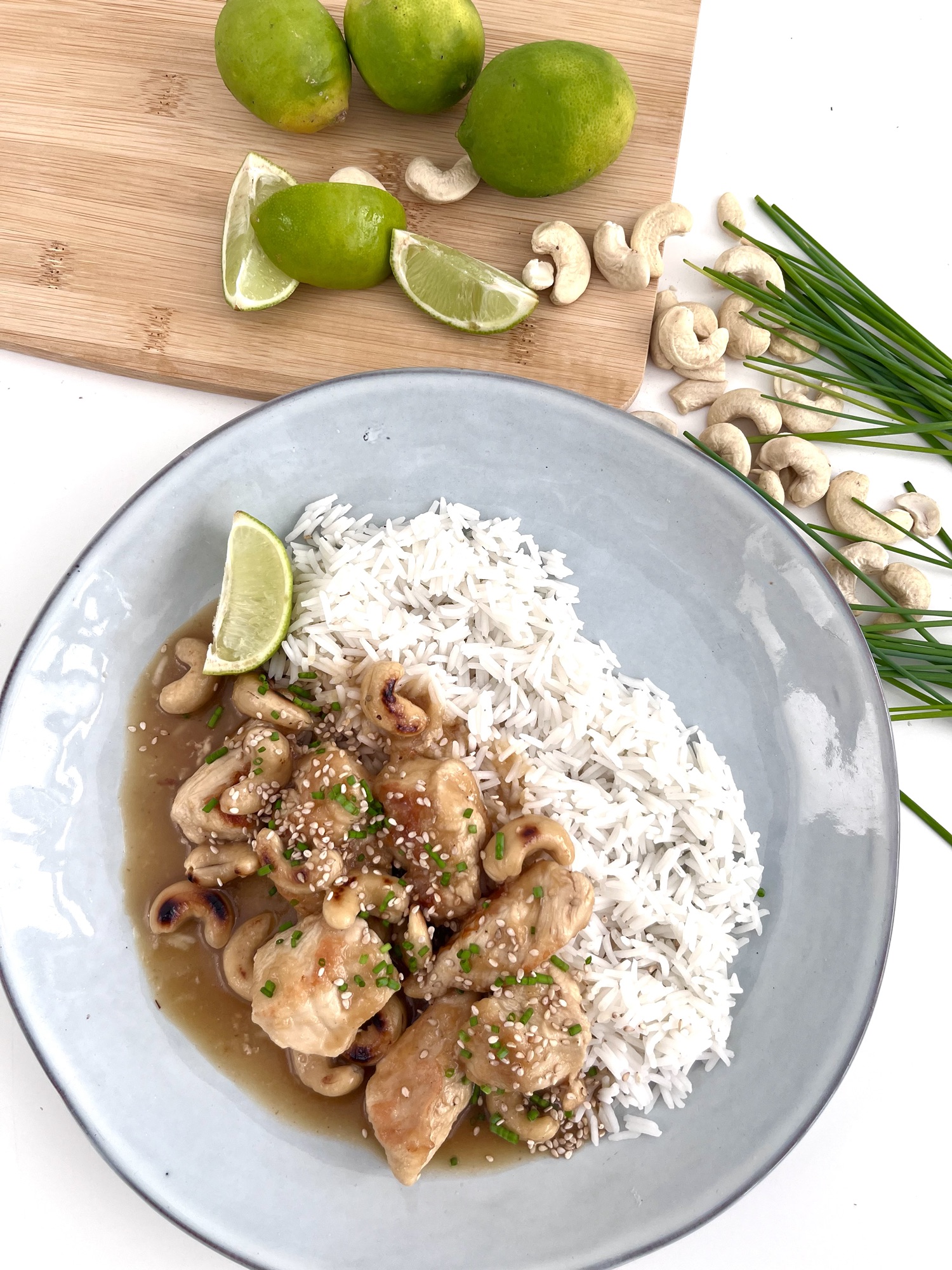 1. En lo que se tuestan los anacardos, corta la pechuga en trozos cuadrados grandes.