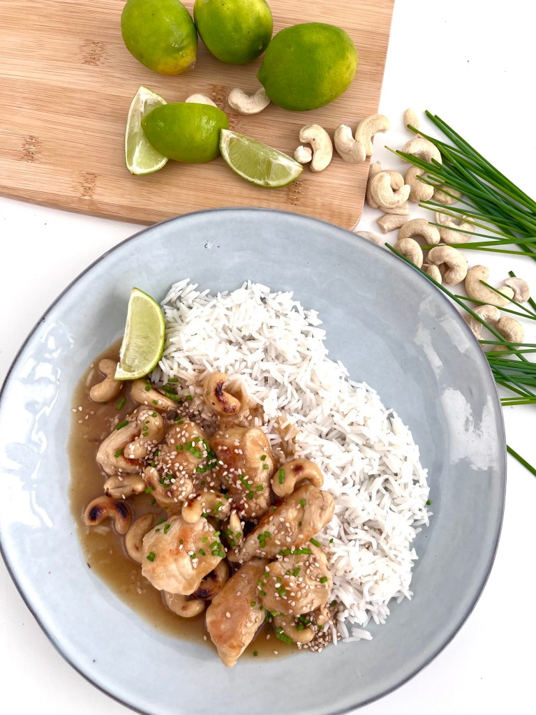 5. Sirve calentito. Yo le puse cebollino fresco picado por encima y semillas de sésamo. Lo acompañé de arroz basmati.