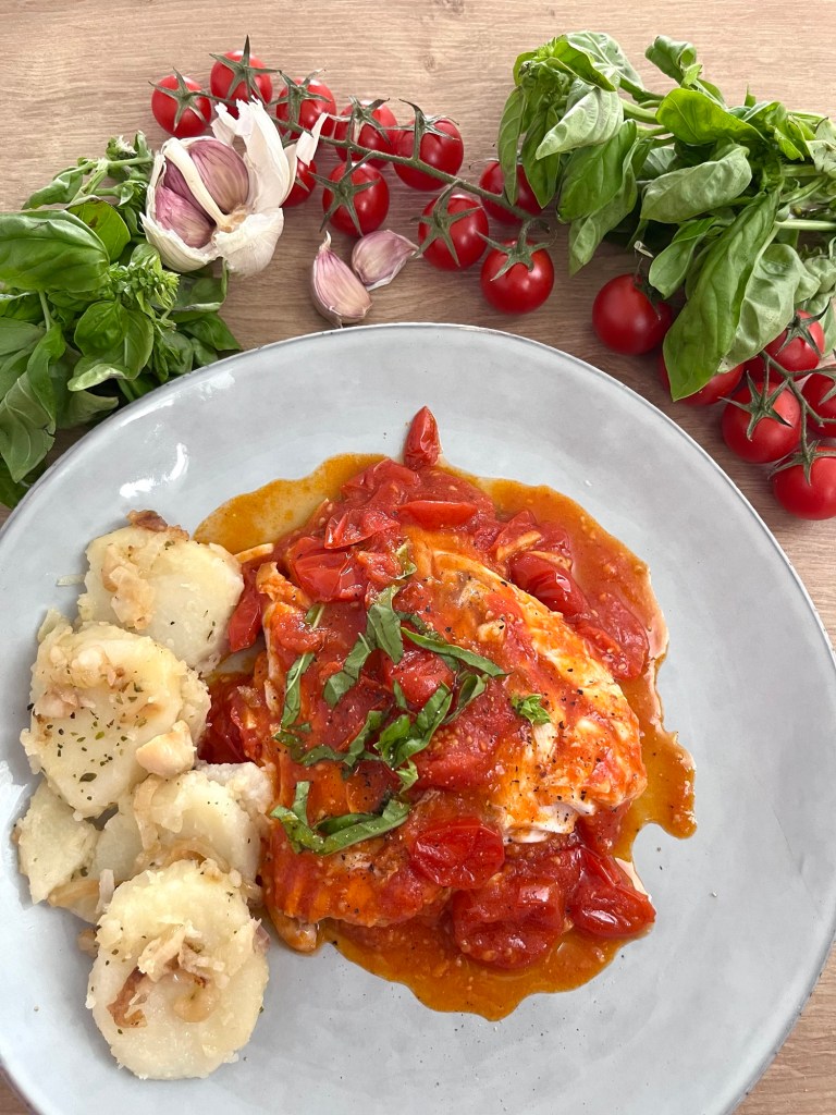 Pescado con tomates cherries se hace solo y se recuerda para siempre. Una forma sencilla y muy sabrosa de comer pescado sin que nadie proteste.