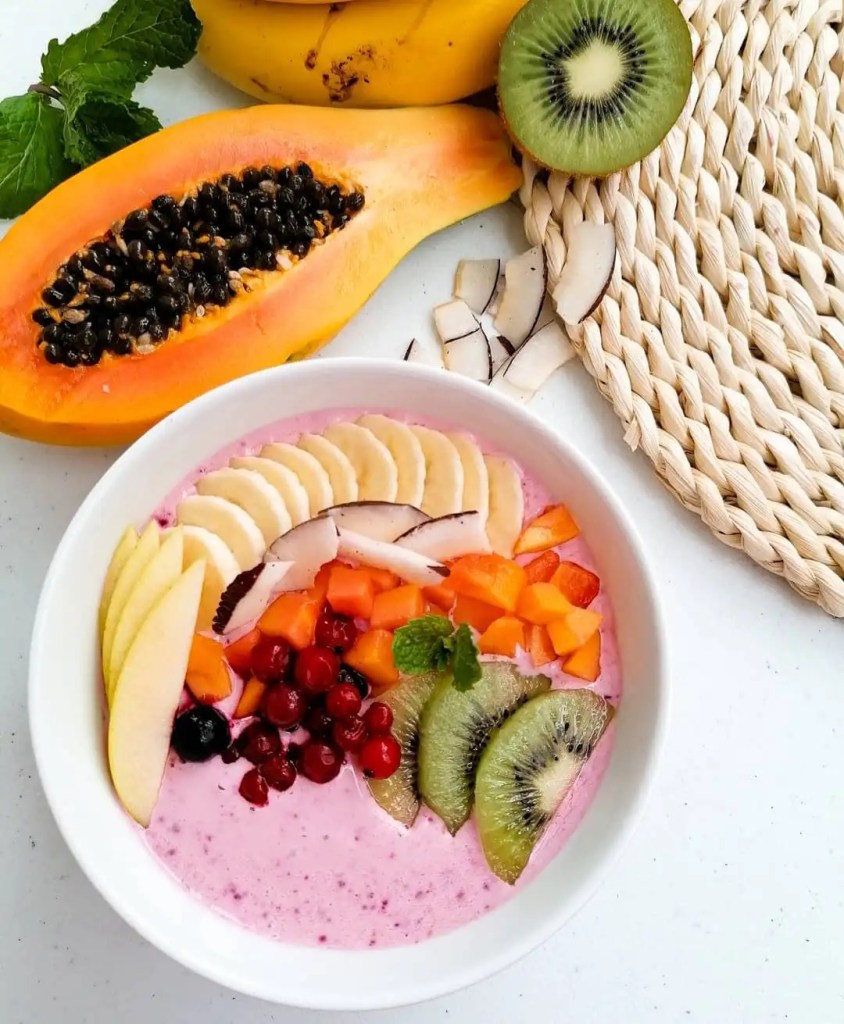 Y te traigo también algo dulce bowl de frutas del bosque.