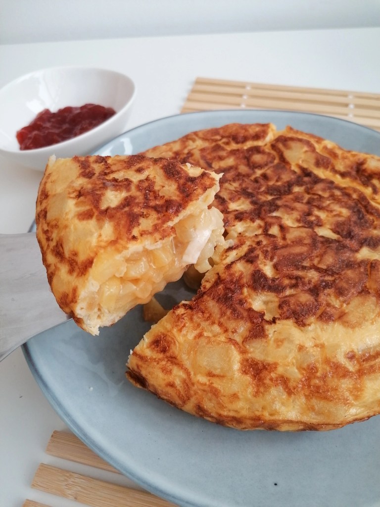Tortilla de papas rellena de queso de cabra si esto no es felicidad, pues que baje dios y lo vea. Encima en casa siempre la hace el señor letrado. No muevo ni medio dedo.