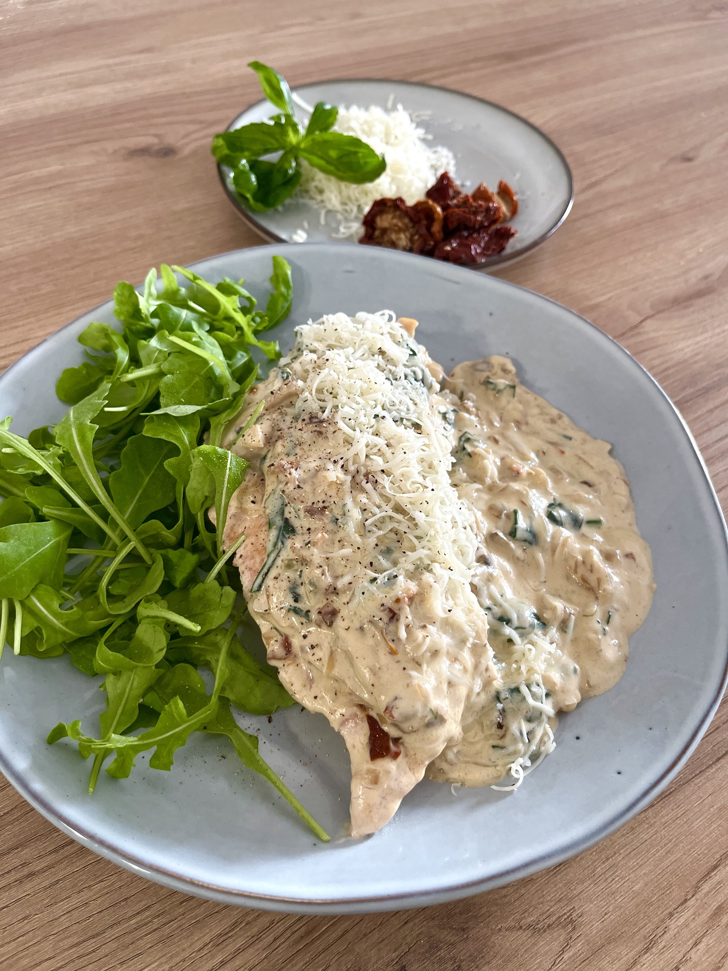 Pavo con salsa de tomate seco y champiñones