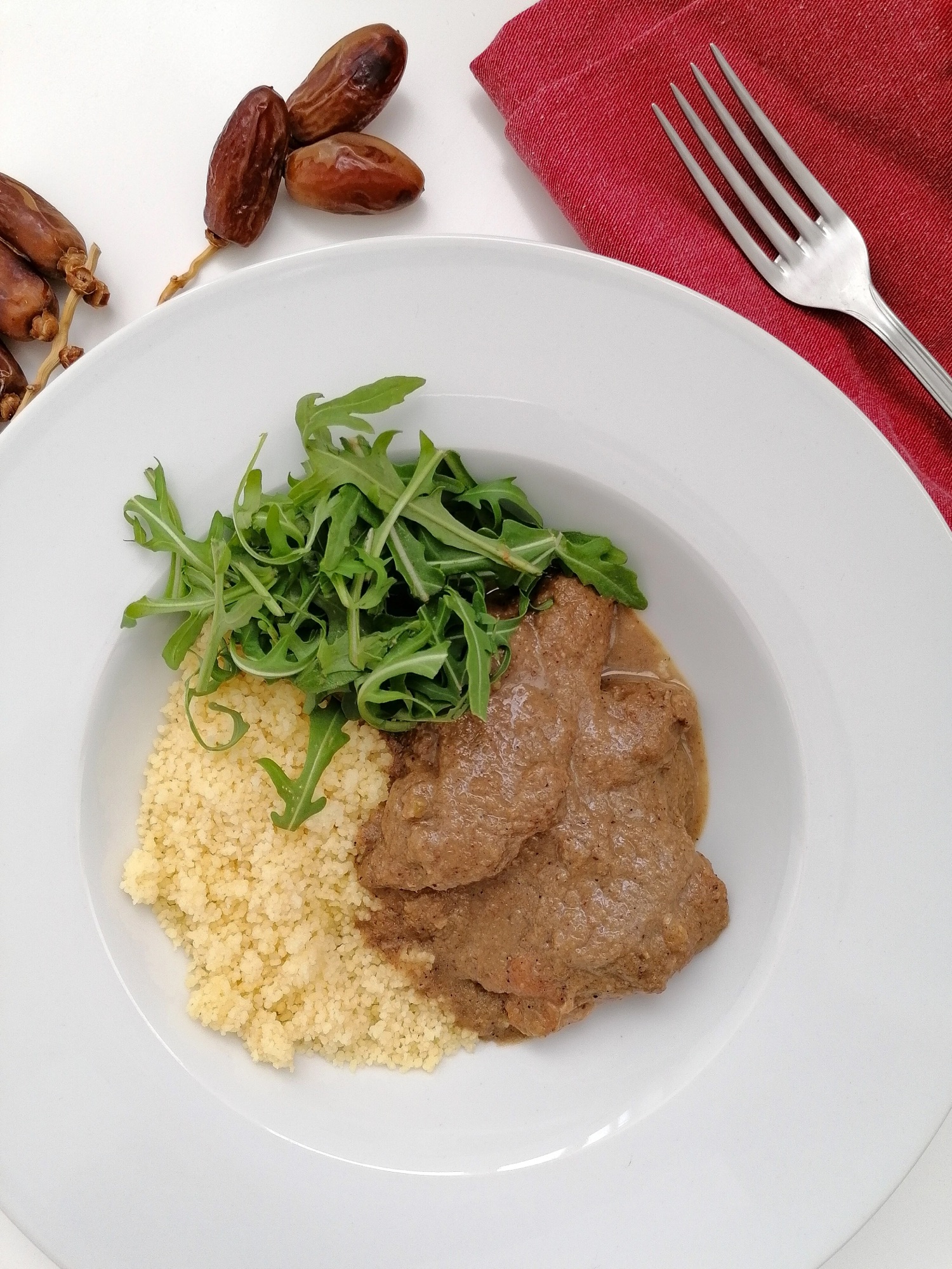 Este pollo moruno tiene un olor espectacular, congela bien y está más rico al día siguiente; aceitunas, dátiles, canela, especias…