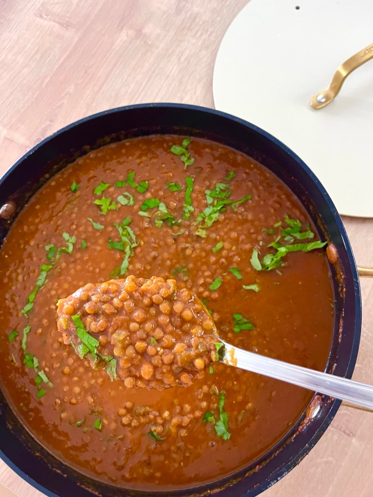 No se lo digan a nadie, pero cuando estoy vaga o voy con más prisas de lo normal, hago estas lentejas con las de bote, las que ya vienen cocidas. Las añado justo después de la leche de coco y lo que hago es que no le pongo agua. Las dejo 7 minutos en el chupchup y quedan cremosas sin agua ni nada.