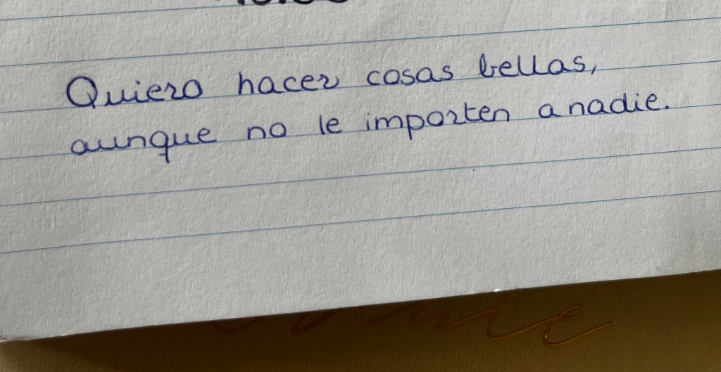 En un mundo que no entiendo la mayoría de las veces, en una vida en la que no sé a dónde voy, pero en la que sigo caminando, quiero crear belleza.