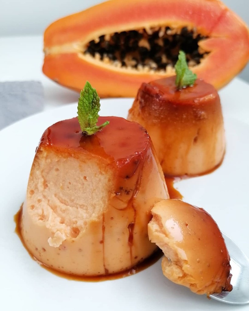 Y de postre o antojo dulce un flan de papaya , sé que no es habitual; pero yo tampoco lo soy.