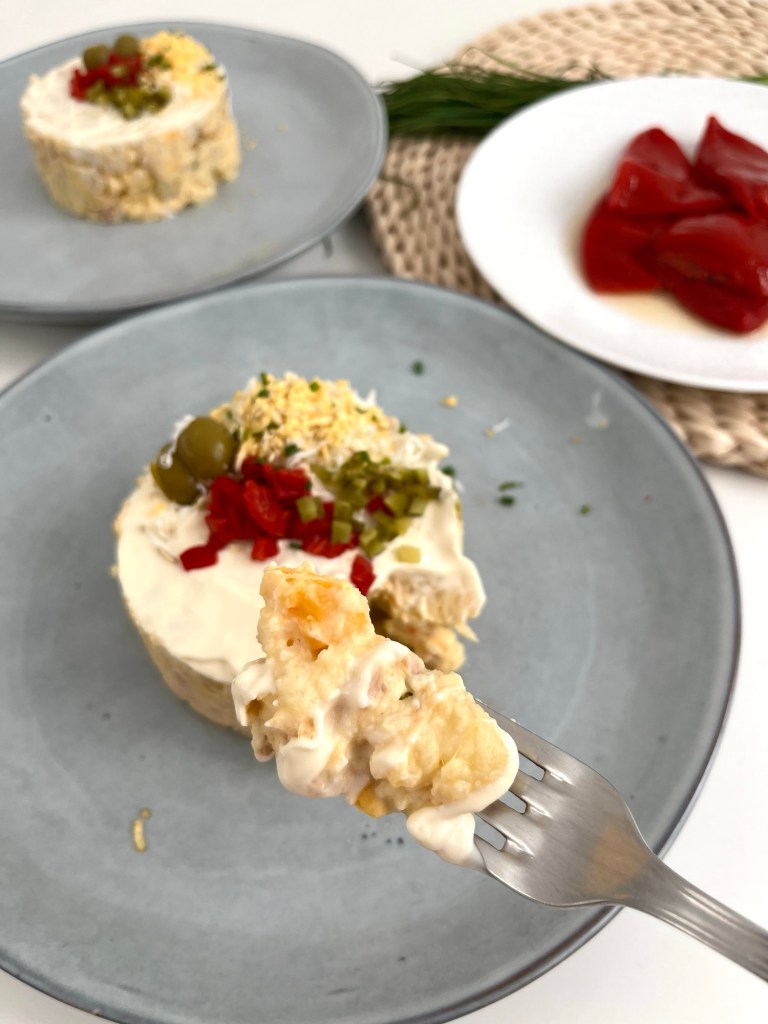 Amamos en mi hogar la ensaladilla de batata, nos gusta mucho más que la clásica. Y esta semana le añadiría yo unas gambas por encima.