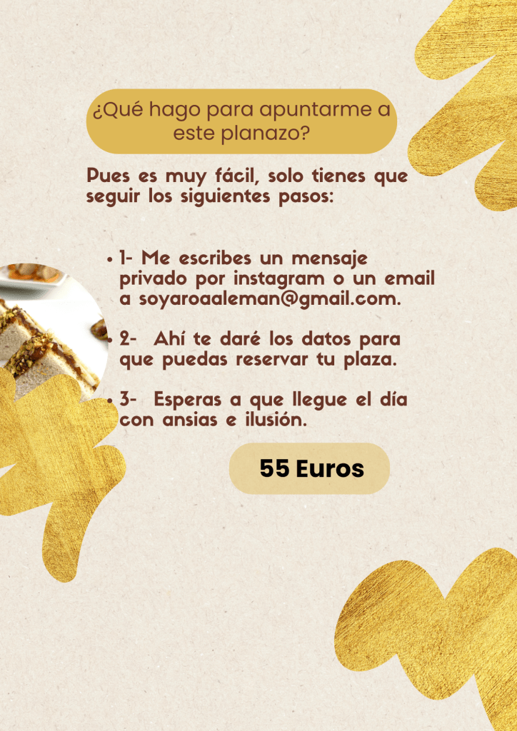 Si te apetece acompañarme y pasar la tarde del viernes conmigo, escríbeme por mensaje privado 📩 y te daré la información para reservar tu plaza.