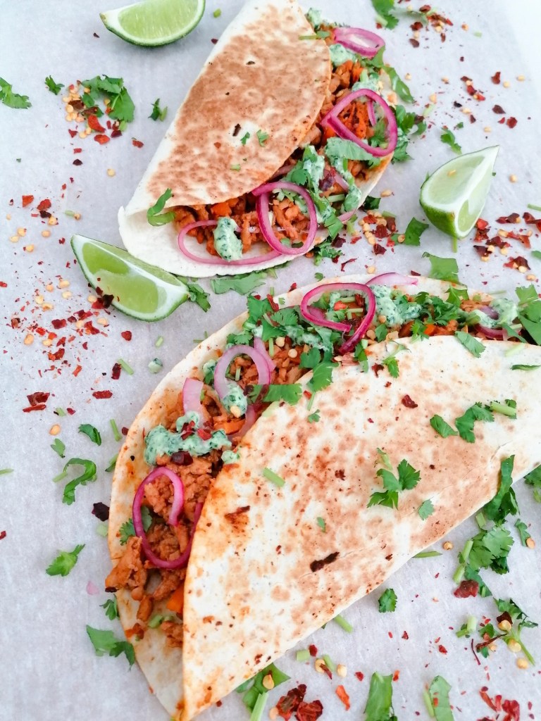 Por ejemplo estos tacos, que están hechos por proteína vegetal, pero que puedes versionar lo que te guste.