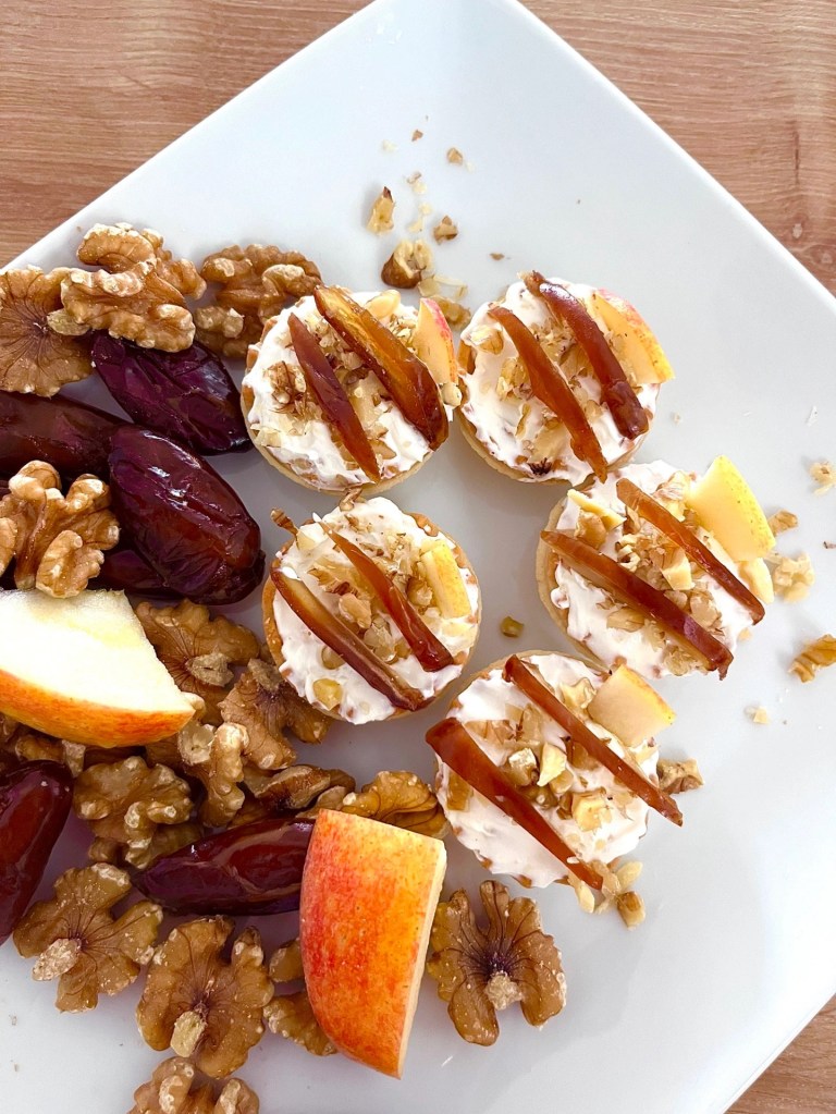 Estos los aprendí en un curso de cocina en miniatura que hice hace mil años y llevan queso crema, manzana, frutos secos y dátiles. En el curso también le ponían vino dulce, no puedo juzgarlos.