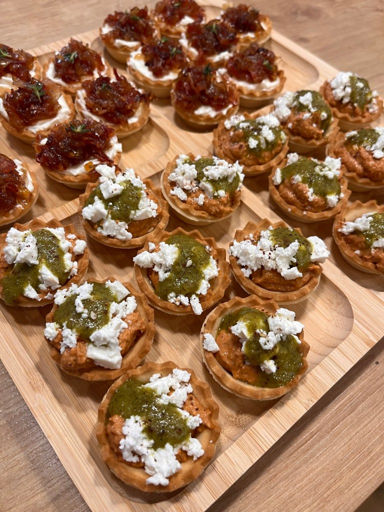 🧀 Canapés de queso feta, muhammara y mojo de pistacho