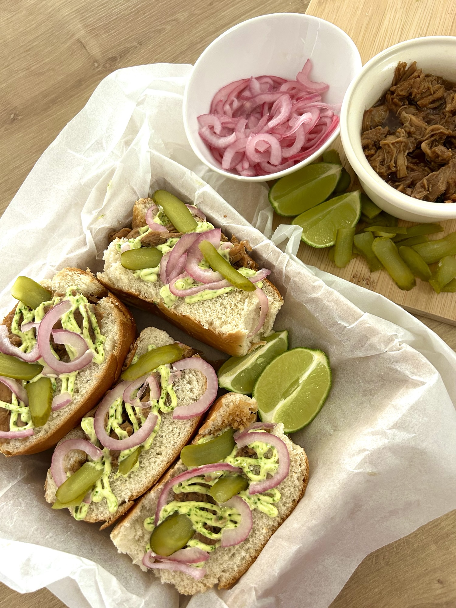 Yo hice dos jamones de cerdo🍖, porque teníamos fiesta en casa con invitados que aman comer. Pero si vas a hacer solo uno, no pasa nada: simplemente disfruta de toda la salsa que te sobrará 😌. Puedes congelarla sin problema, con o sin la carne, y tenerla lista para cuando la necesites ❄️✨. 🌟 BocataSigue leyendo «Bocata de cerdo en salsa de soja y miel con alioli de cilantro, cebolla macerada y pepinillos»