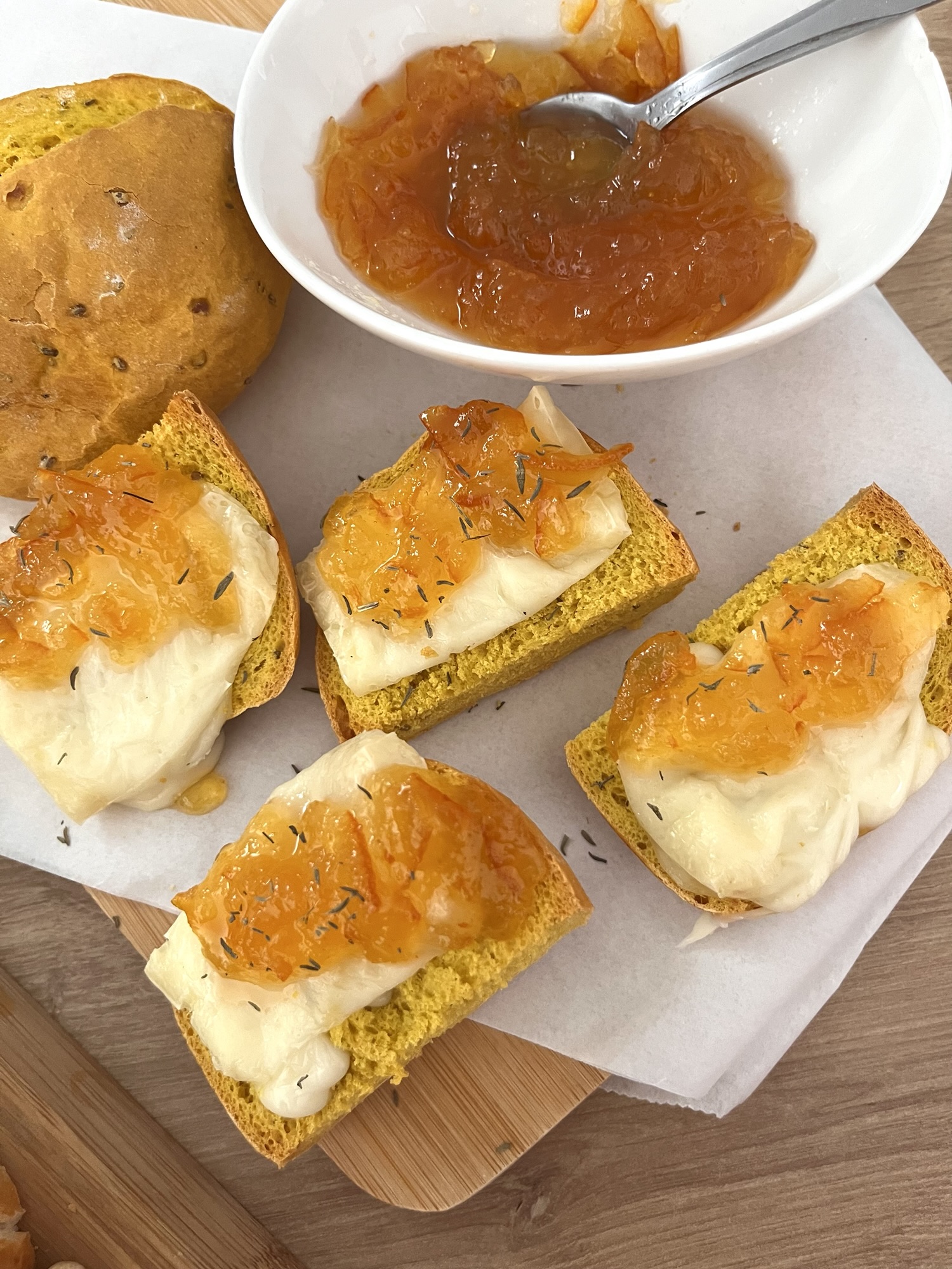 Preparé este aperitivo en casa bien calentito para acompañar a un vermut de Tenerife que me regaló @benditavendimia. Lo de la tierra siempre casa bien 🧡y les juro que no tuve ningún poder de decisión sobre qué aperitivo preparar para acompañar a este vermut🥃 Laurisilva de @fincaelalcon. Él solito me susurró lo que quería 🌱ySigue leyendo «Tosta de pan de millo con queso de Guía y mermelada de naranja amarga.»